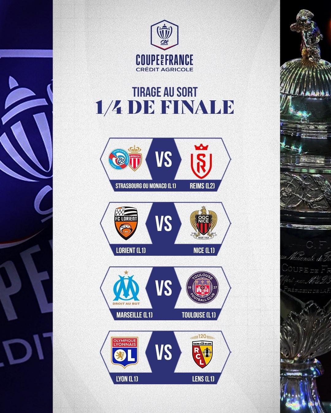 2025/26赛季法国杯进行了1/4决赛的抽签仪式,八强对阵由此出炉。